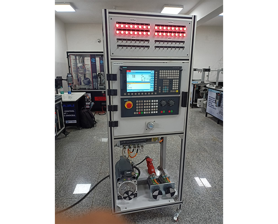 The CNC Simulation rack is highly efficient way to impart the significant knowledge of complete CNC System-with practical movement of motors as an individual axis in the areas-job programming, system commissioning including PLC programming, development & troubleshooting